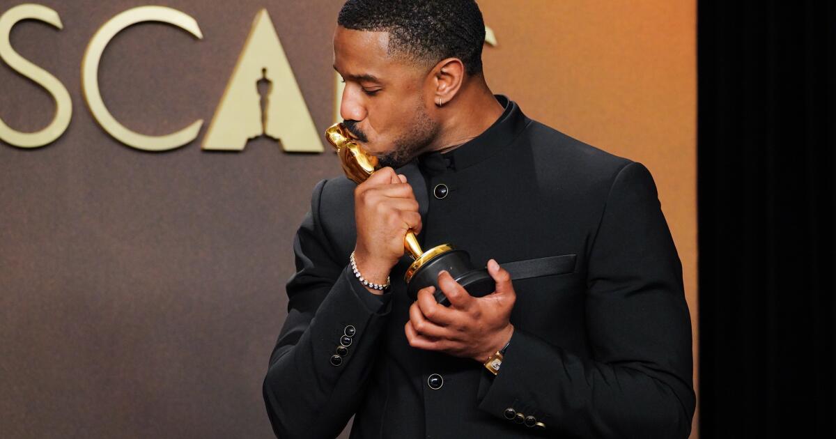 www.latimes.com-Los aplausos y los gritos que se dieron en la sala de prensa de los Premios de la Academia tras el ingreso de Michael B.